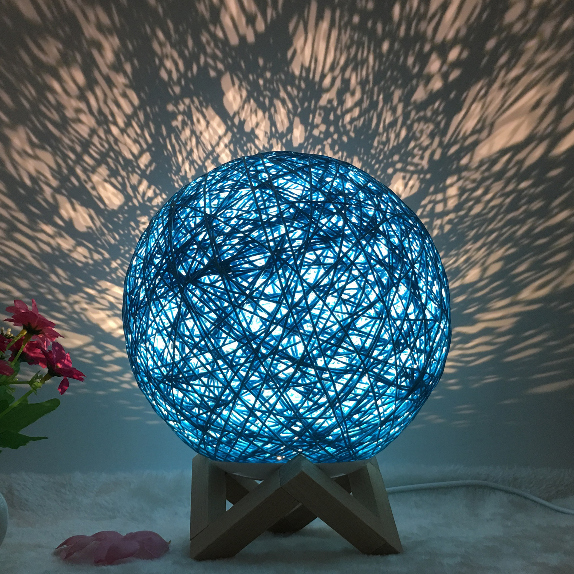 Amazon Hot Selling Creative Linen Table Lamp Novel and Unique LED Intelligent USB7 Color RGB16 Color Remote Control Rattan Ball Lamp